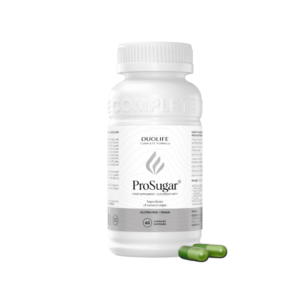 ProSugar® este un supliment alimentar sub formă de capsule, realizat din ingrediente de origine naturală atent selecționate, concepute pentru a completa dieta zilnică și a susține metabolismul carbohidraților și echilibrul glicemic.