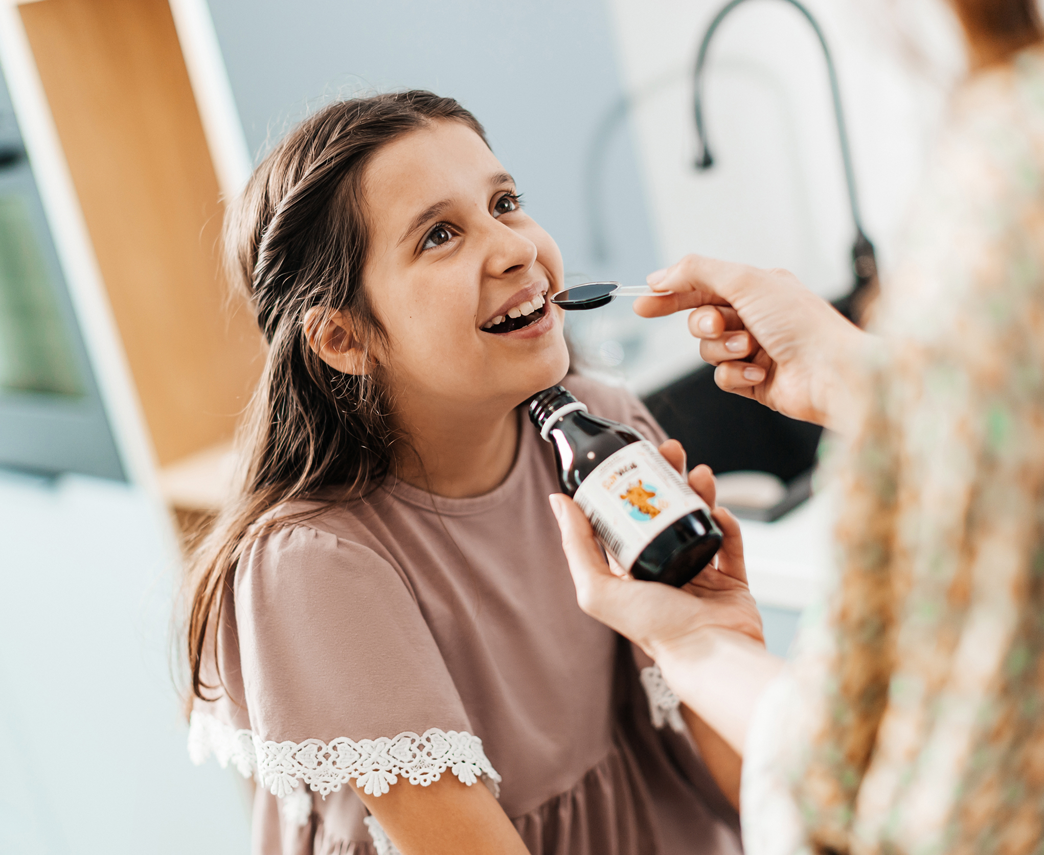 Copii peste 6 ani: 5 ml o dată pe zi, după masă, de preferință diluat cu apă